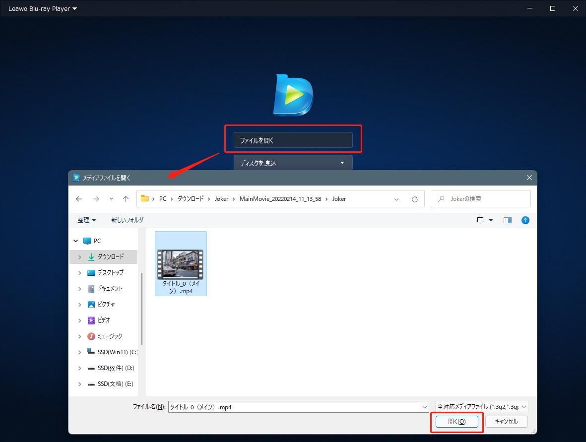 ここでは、Windows11でLeawo Blu-ray Playerを利用して動画・音楽ファイルを再生する方法を紹介します。