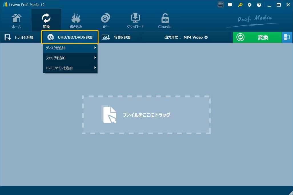 Leawo Blu-rayレコーダー変換は暗号化されたBDAVディスクを解読して、MP4/MKV/AVI/WMVなど様々な動画や音声形式にリッピングできるし、様々なメディアプレーヤーとデバイスで再生できる形式に直接変換することもできます。このガイドでは、BDAVディスクを動画/音声ファイルにリッピング・変換する方法を紹介します。