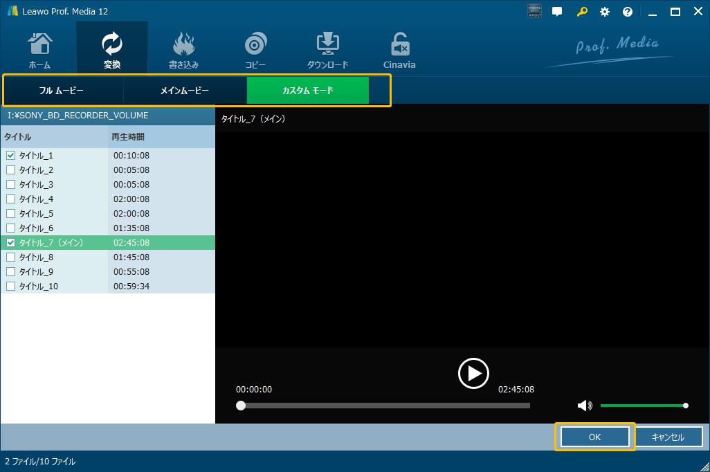 変換モードを決定してから、変換したいタイトルを選択して、「OK」ボタンをクリックします。