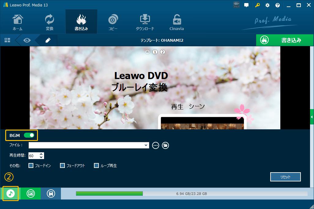 Leawo Prof. Media 13を起動して、ホーム画面にある「DVD ブルーレイ変換」タブをクリックすると、DVDブルーレイ変換のモジュールを起動します。または上の機能タブにある「書き込み」アイコンをクリックします。