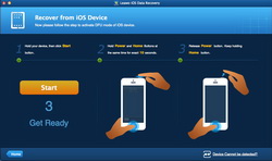 USBケーブルでiデバイス(iPhone 4又はiPod touch 4)をMacBookに接続し、Leawo iPhoneデータ復元 for Macを実行してください。そしてMac用LeawoのiOSのデータ復旧を起動します。ソフトウェアは、あなたのiデバイスを検出した後、iOSデバイスのDFUモードを有効にするガイドが指示されます。指示通りにDFUモードを手動で有効にする必要があります。