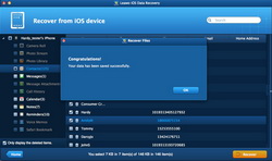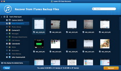 MacブックにLeawo iPhoneデータ復元 for Macインストール、実行して、「iOSデバイスから復元」選択してから、iOSデバイスをお使いのMacブックに接続してください。すると、ソフトは自動的にiOSデバイスをスキャンします。お使いのデバイスはiPhone 4やiPod touch 4である場合、DFUモード下でファイルを復元する必要があります。パート3をご参照ください。