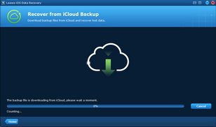 「スキャン」ボタンをクリックした後、iCloudバックアップの利用は初めてであれば、Leawo iPhone データ復元はiCloudバックアップのダウンロードを自動的に開始します。ダウンロードに必要な時間は、バックアップのサイズによって違っています。「キャンセル」をクリックすることでバックアップのダウンロードを停止することができます。