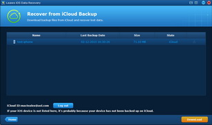 このiPhoneデータリカバリーソフトウェアは、あなたのiCloudでのバックアップをスキャンし、バックアップファイルをメインインターフェイスに表示することができます。iCloudのバックアップをスキャンするには、バックアップをダブルクリックするか、右下の「ダウンロード」をクリックしてください。このApple IDの下でバックアップをスキャンしたくない場合は、左下にある「ログアウト」をクリックすることができます。