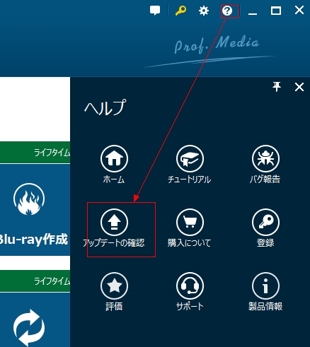 下記の画像をご参照して、お使いの製品を最新のバージョンにアップデートして問題を解消できるかご確認ください。