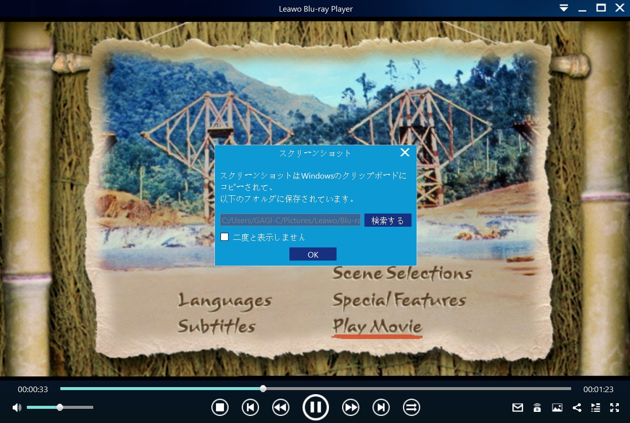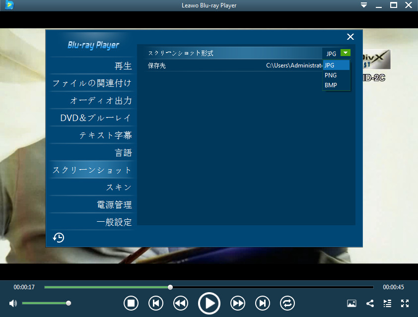実は、もう一つ簡単な方法があります。それは動画を 「Leawo Blu-ray Player」で再生して、キャプチャーすることです。「Leawo Blu-ray Player」は国内初の完全無料のブルーレイ再生ソフトです。Leawo Blu-ray PlayerはパソコンでBlu-rayディスク、Blu-rayフォルダ、ISOファイルを再生できます。もちろんDVDディスク/DVDフォルダ/ISOファイルやMP4、WMV、AVI、AVC、MTS、MKV、M4A、AVCHD、MPEGなど形式の動画もサポートしています。その他、Leawo Blu-ray Playerは完全無料な4K動画プレーヤーとして、MKV/MP4/TSフォーマットの4Kビデオを高品質で再生可能。