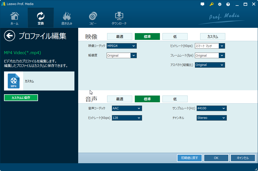 メモ: ドロップダウンボックスで、「編集」オプションをクリックすると、目標ビデオのパラメーターを調整可能です。