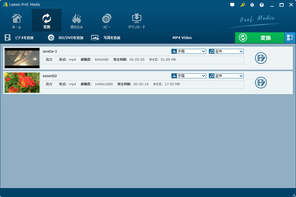 動画のサイズを編集したり、透かしを追加したり、動画効果を調整したりなど、動画をカスタマイズしたい方は、Leawo HD動画変換プロの動画編集機能を試してみてください。追加された動画ファイルの右にある「編集」ボタンをクリックすれば、動画編集画面に入ります。