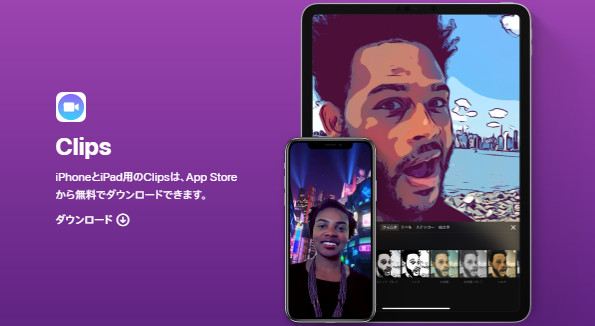 Clipsは、文字、エフェクト、グラフィックスなどをつけた楽しいビデオを作ってシェアすることができるiOSアプリケーションです。純正のアップル公式アプリClipsは、簡単な操作で短い動画を作成・共有することができます。録画ボタンを押し続けて、その場でビデオを撮影するだけです。もちろん、ビデオクリップにテキスト、エフェクト、音楽、画像、絵文字などが追加可能です。 作成した動画は、Facebookやインスタグラム、YouTubeなどにそのままアップロードできるほか、iMessage(Appleのメッセージアプリ)で共有すれば動画内に写っている人物を特定し、連絡先から自分以外の登場者の送信先を提案する機能も搭載されています。