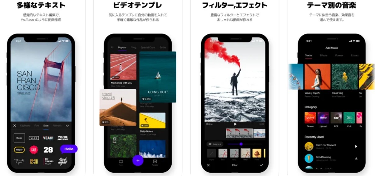 VITAは、簡単で便利な動画編集アプリで、今は人気急上昇中!世界で2000万ダウンロードを突破しました。すべての機能は完全に無料で使用できます。未経験者でもすぐにオシャレな動画が作れます。テンプレ機能を使えば、写真と動画を組み合わせるだけで完成できます。また、テンプレは100種類以上あるので、Vlog・旅行・誕生日動画など一瞬で作れます。人気YouTuberが使っているようなエフェクトやテキストが無料で使用可能なので、オススメです。