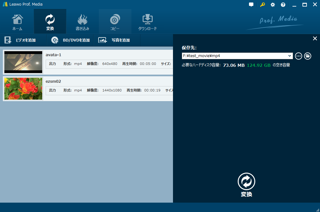 Leawo HD動画変換プロは使いやすいインタフェースを搭載し、ビデオファイルをインポートためのアイコンがあります。ユーザーは気楽にMP4ビデオを追加できます。「ビデオを追加」ボタンをクリックするか、直接MP4ビデオをドラッグして、MP4ビデオをファイルをプログラムに追加できます。