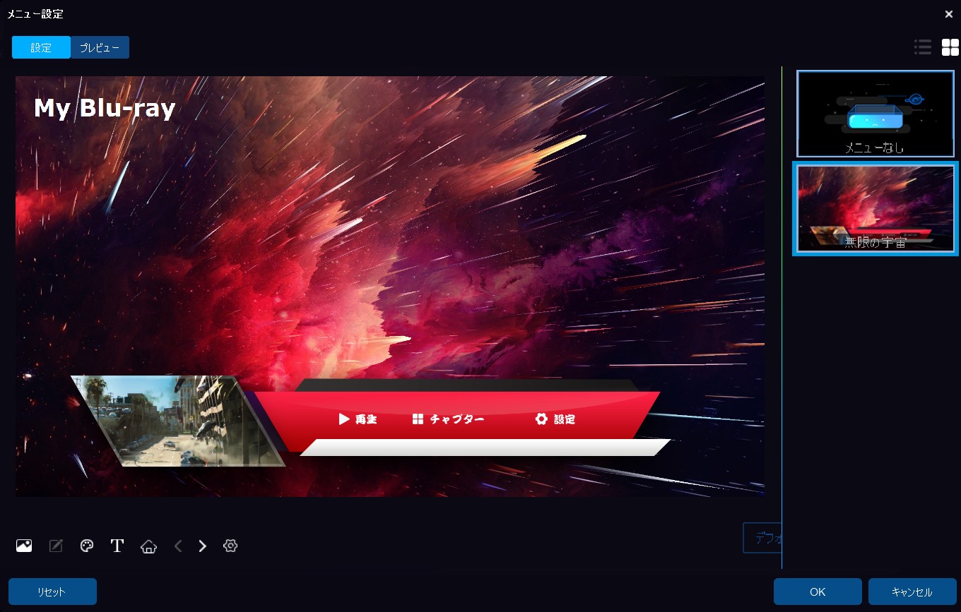 「メニュー」をクリックすると、ディスクのメニューを作成することができます。