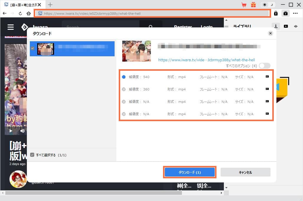 • 目的の動画を再生すると、ソフトが自動的に動画の解析を行い、ダウンロードオプションが表示されます。