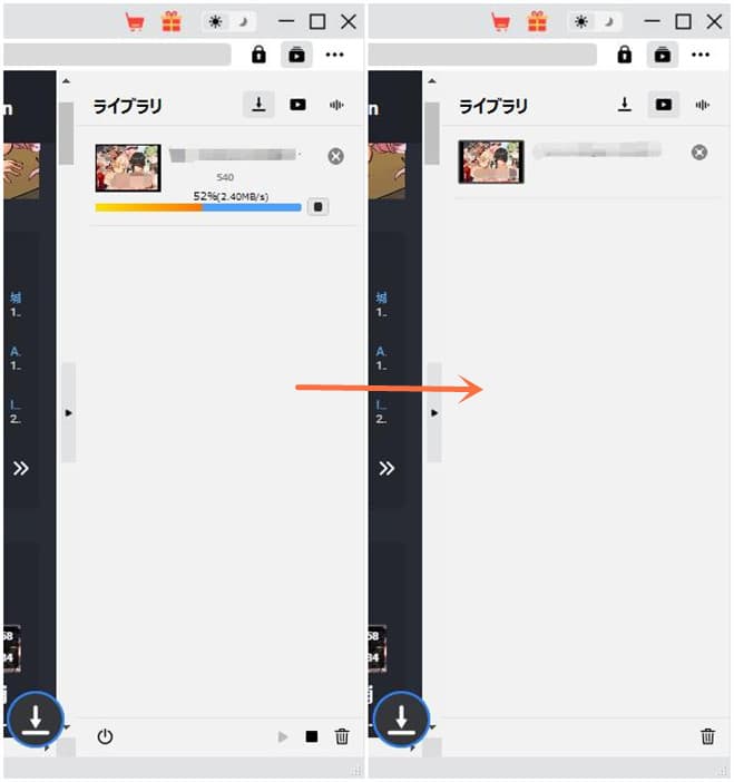 • ソフト右側にあるライブラリに進捗状況が表示されます。