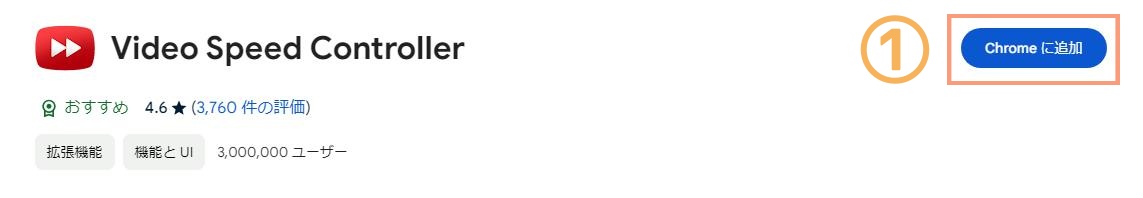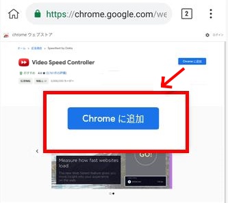 • 「Chromeに追加」ボタンをクリックして、「Video Speed Controller」を追加します。
