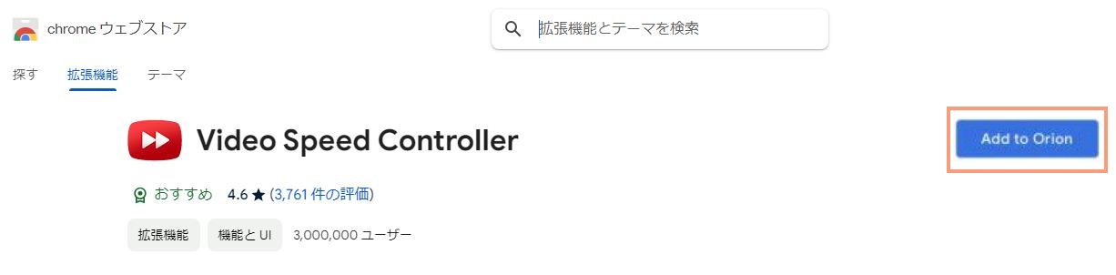 • 「Prime Video Speeder」または「Video Speed Controller」を検索して、「Add to Orion」拡張機能をOrionに追加します。