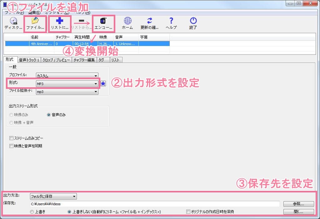VLC Media PlayerでFLVからMP3に変換する手順: