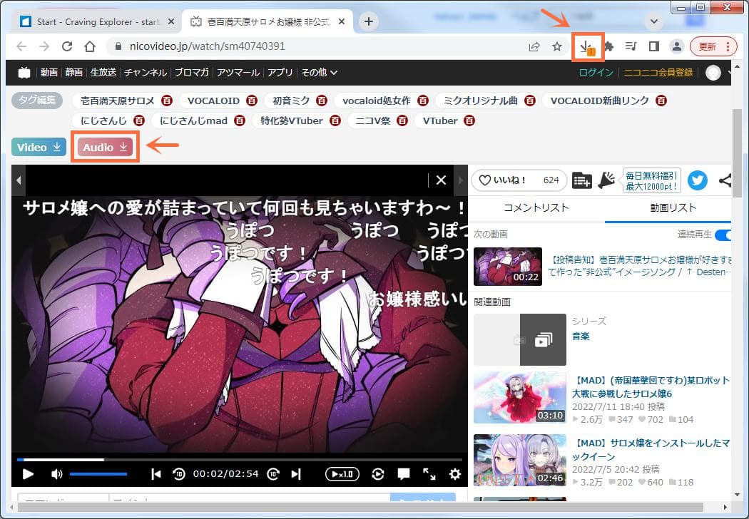 Craving Explorerでニコニコ動画をMP3に変換ダウンロードする手順: