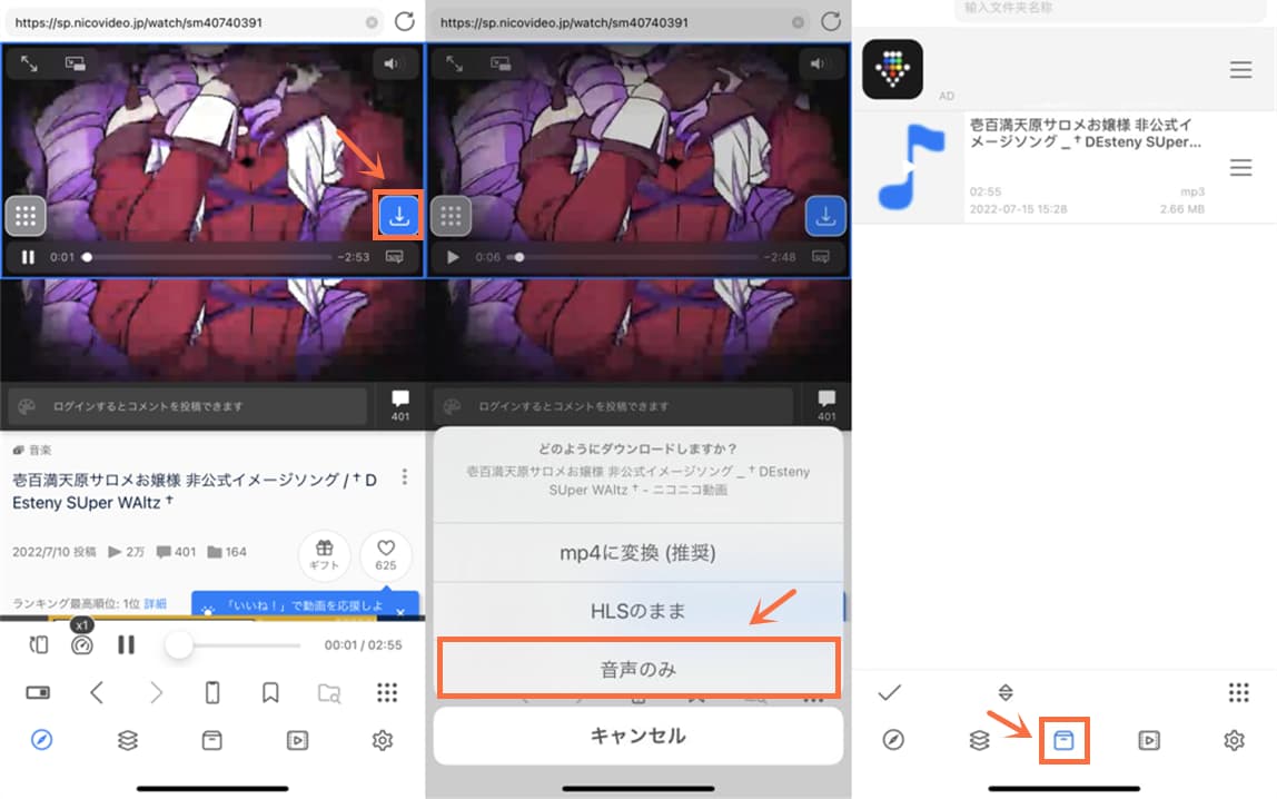 スマホでニコニコ動画をMP3に変換ダウンロードする手順: