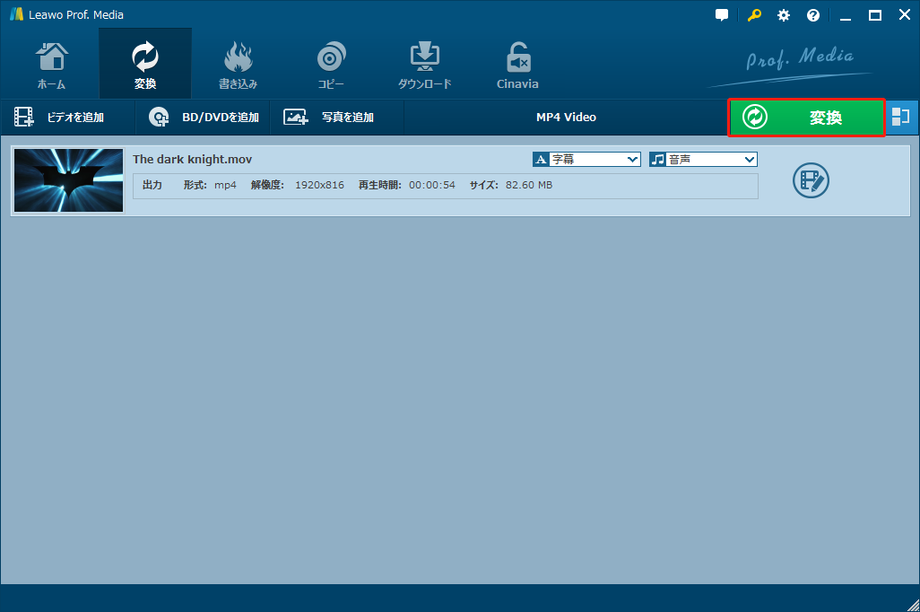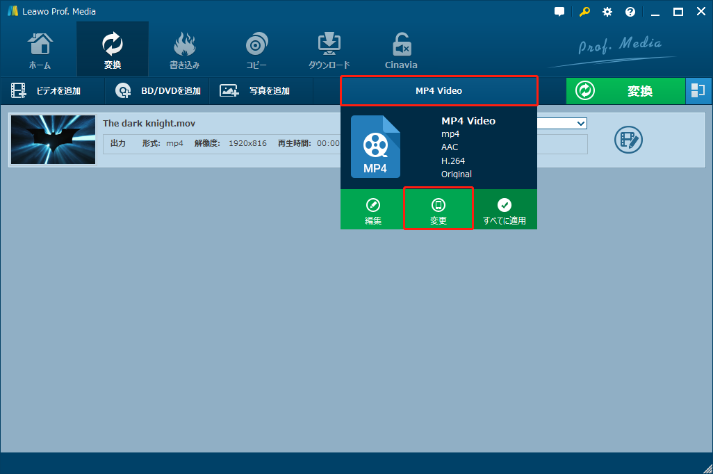 Leawo HD動画変換プロで無劣化にTSファイルをMP4に変換する手順: