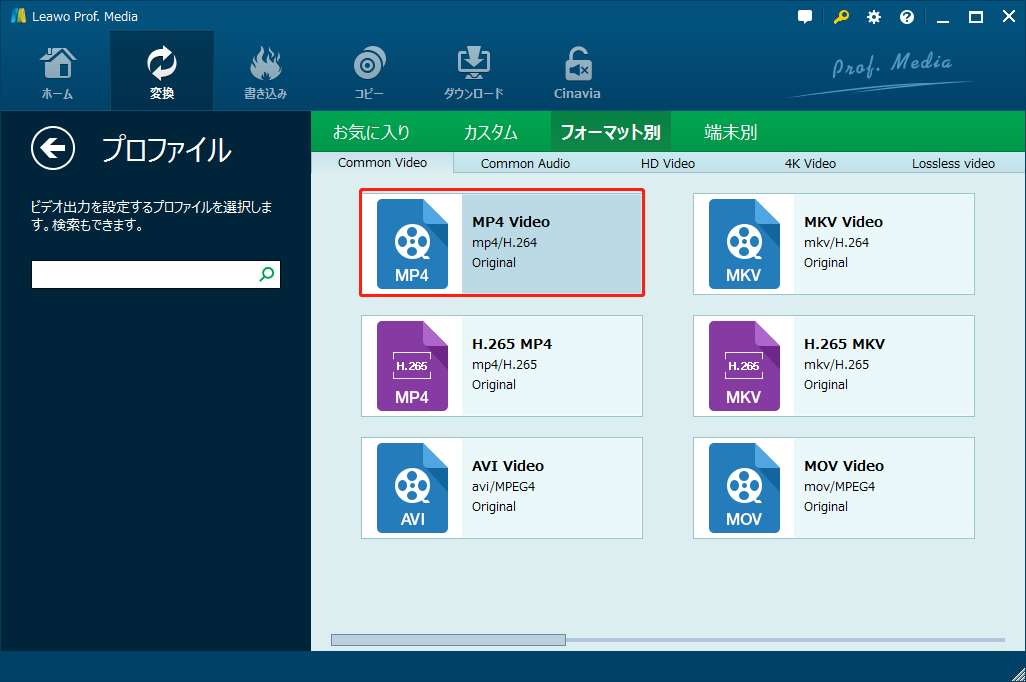 簡単かつ無劣化にTSファイルをMP4に変換するツール―Leawo HD動画変換プロ