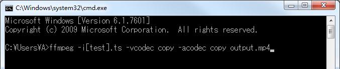 ffmpeg -i [ファイル名].ts -vcodec copy -acodec copy output.mp4