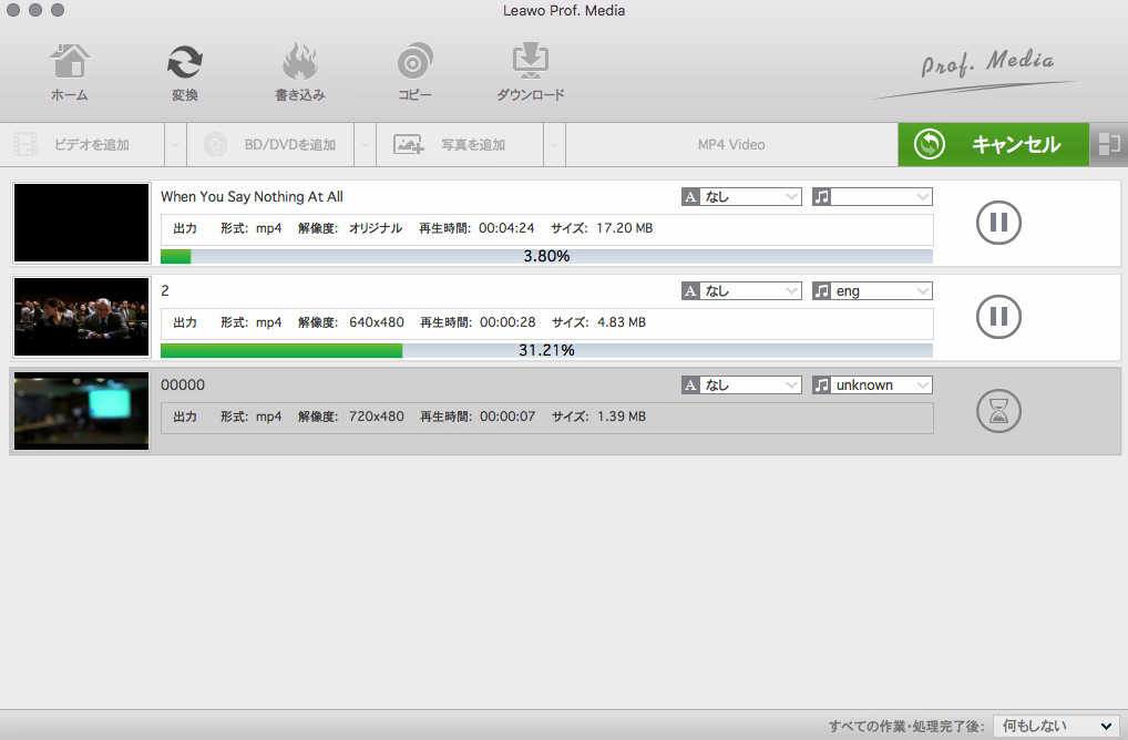 出力プロファイルを設定した後、「変換」ボタンをクリックすれば変換が開始します。