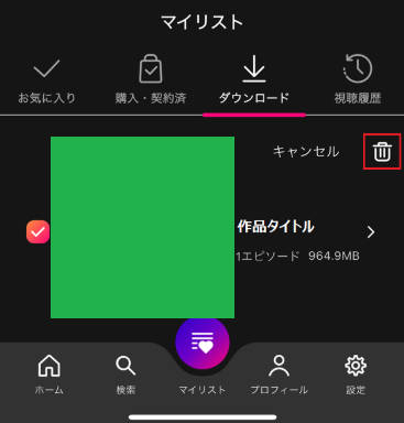 ダウンロードした動画は、アプリ下部の「マイリスト」→「ダウンロード」セクションで管理されます。ここで、ダウンロード済みのすべての作品を一覧で確認できます。
