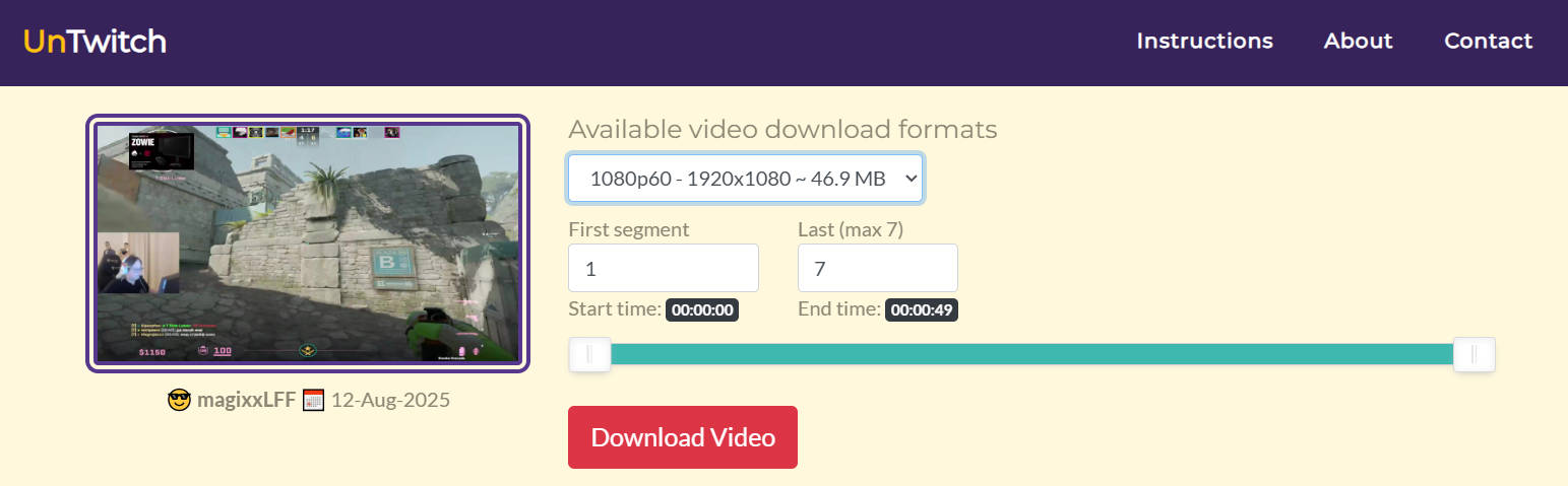 専用ソフトをインストールせずに、ブラウザだけでTwitchのクリップをダウンロードしたい場合は、オンラインダウンロードサイト「untwitch」が便利です。このサイトは特にTwitchクリップのダウンロードに特化しており、最大1080Pの高画質に対応しています。