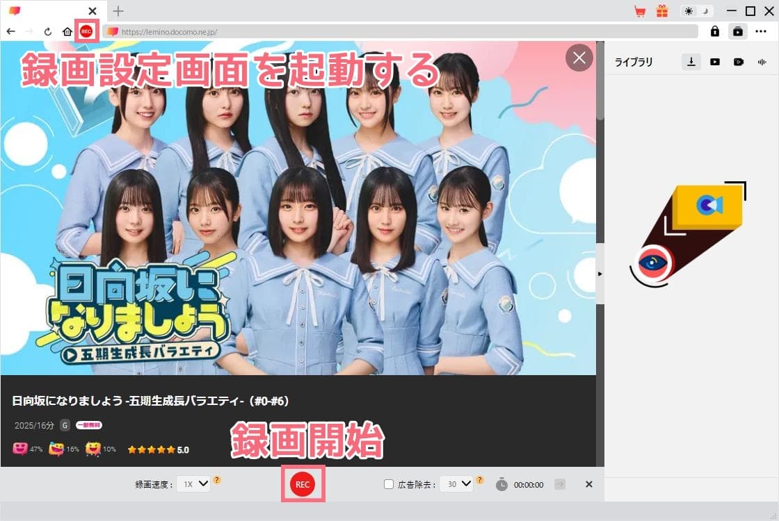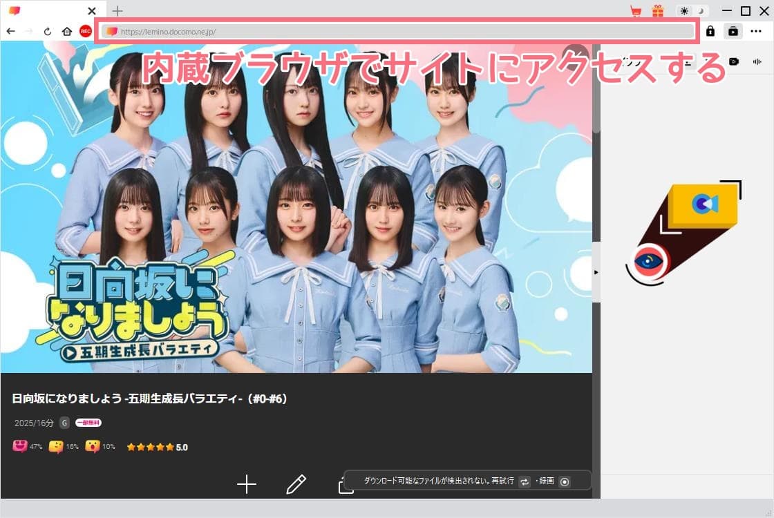 2. ソフトを起動し、内蔵ブラウザでスカパーの配信ページにアクセスして、録画したい番組を選択します。