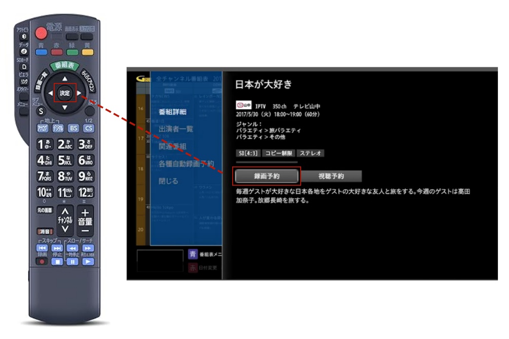 3. 番組表から録画したい番組を選び、決定ボタンを押します。