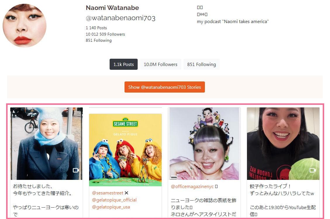 ※芸能人・有名人のインスタグラムを探す場合、普通は一番最初に表示するアカウントになります。