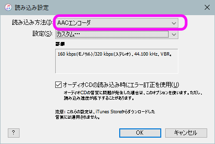 「Windows Media Player」を起動、「メニューバー」で「CDの取り込み」を選択します。