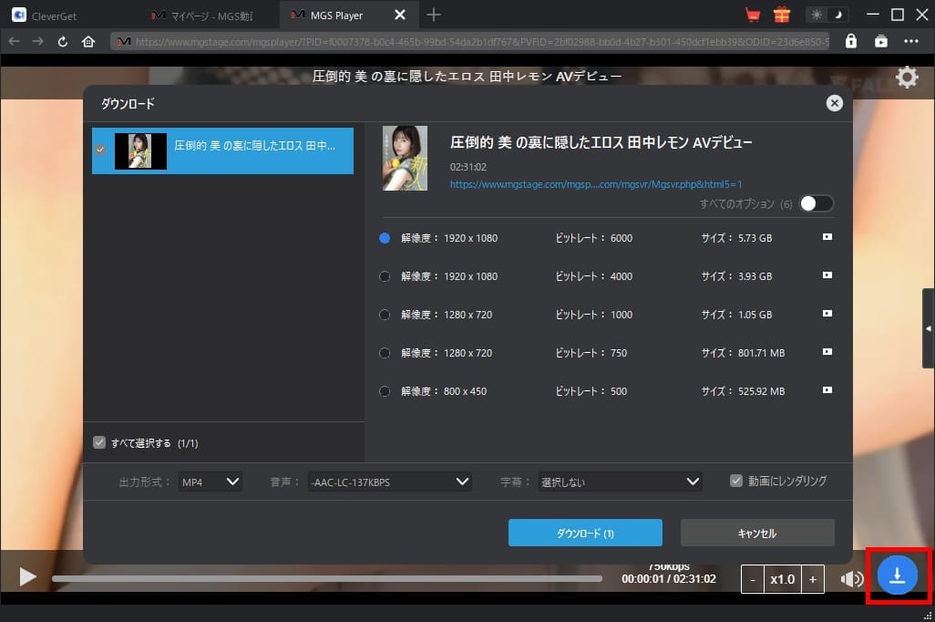 MP4/MKV形式でMGS動画を変換ダウンロード可能