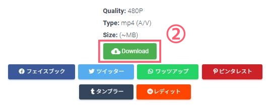 3. しばらくするとダウンロード可能な形式や解像度が表示されるので、希望するオプションを選択すると動画が保存されます。