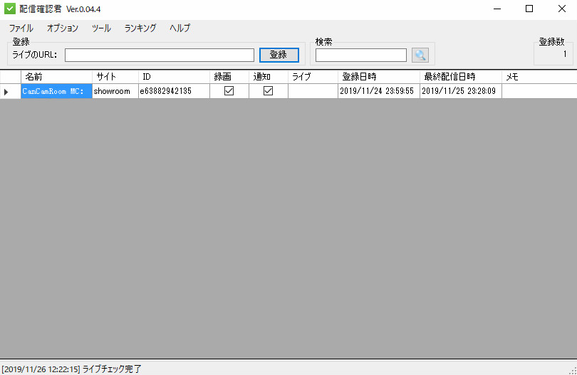 ショールーム録画っちとは、Showroomの生配信を録画できるソフトです。使い方もかなりシンプルで、生配信のURLをコピー&ペーストするだけで録画可能です。また、配信確認君という予約ツールと連携すれば、生配信が始まると自動的に録画できるので、大変便利です。