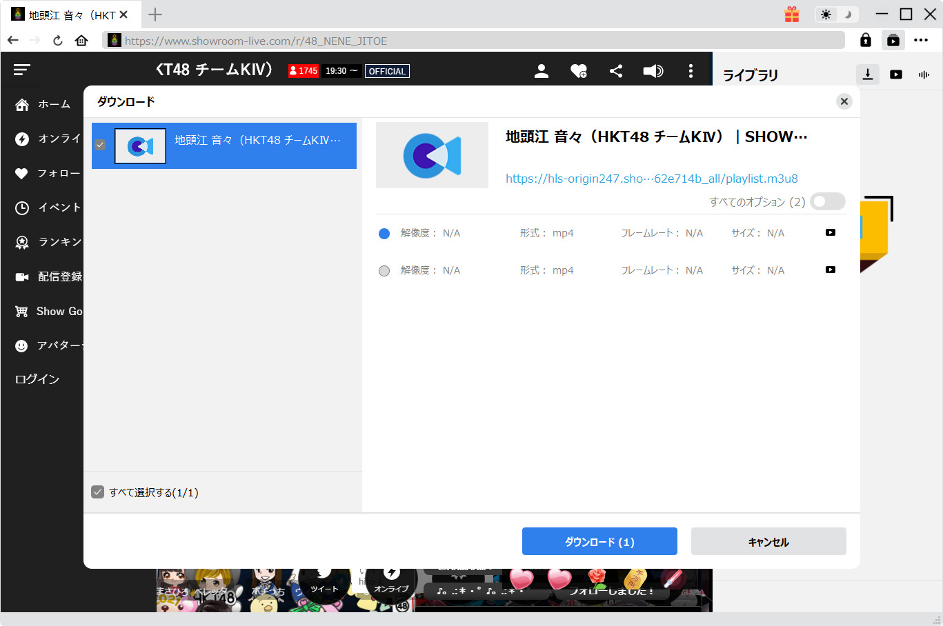 CleverGetとは、1000以上の動画共有サイトから動画・音楽を保存できる専門ツールです。SHOWROOMのライブ配信を再生してながら、高画質のまま録画してMP4ファイルとして保存できます。SHOWROOMのほかに、YouTube Live、ニコニコ生配信、ツイキャス、Twitchなどの生配信サービスにも対応しています。