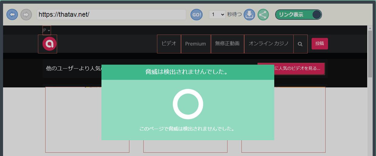 また、サイトの安全性を判断できるサービスでチェックした結果、ThatAvにおいてウィルスが検出されませんでした。