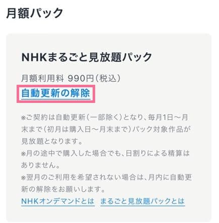「NHKまるごと見放題パック」を以下の画面から購入する場合は、自動で更新されません。