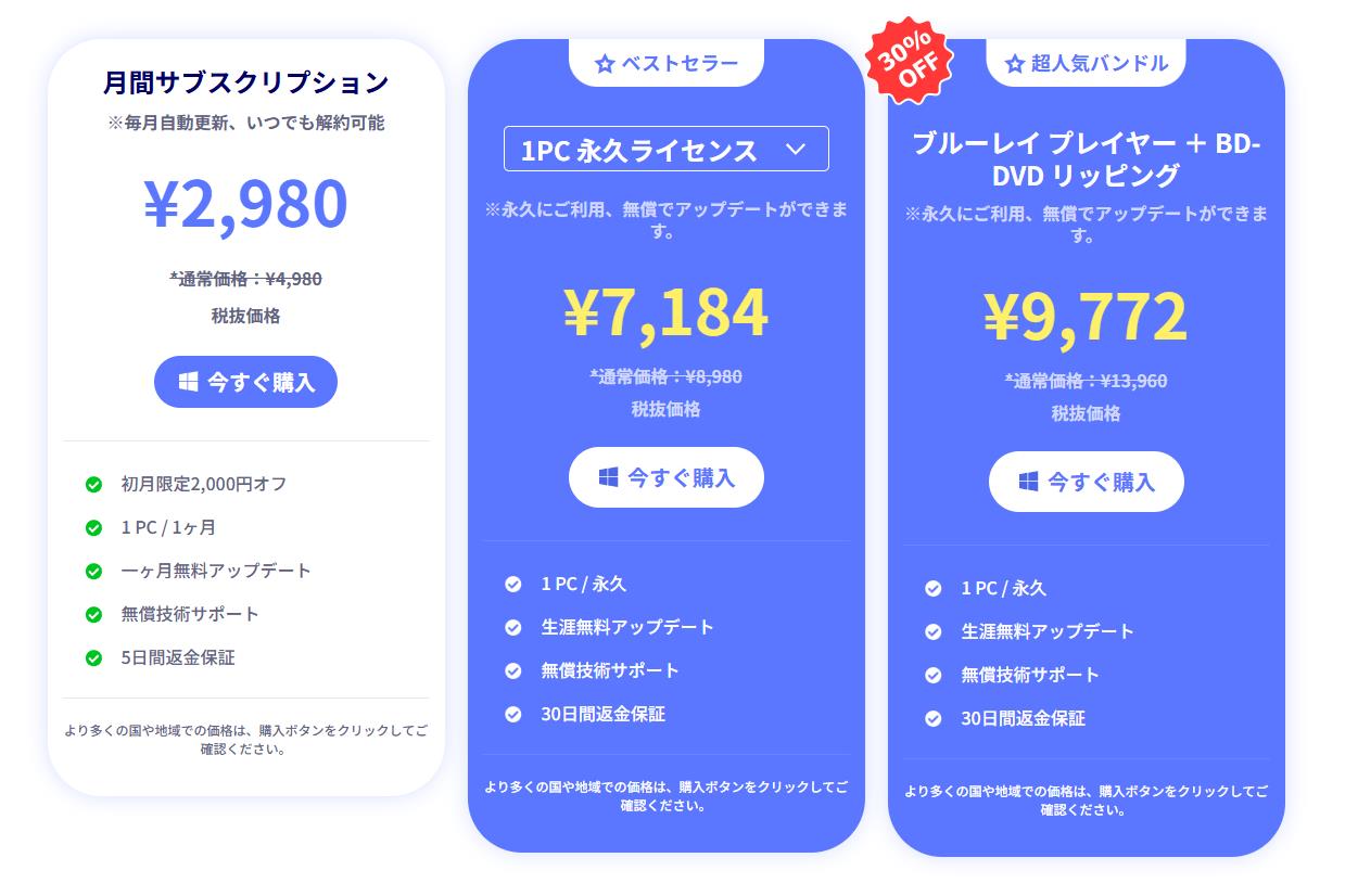 VideoByte BD-DVDリッピングには三つのプランが提供されます。