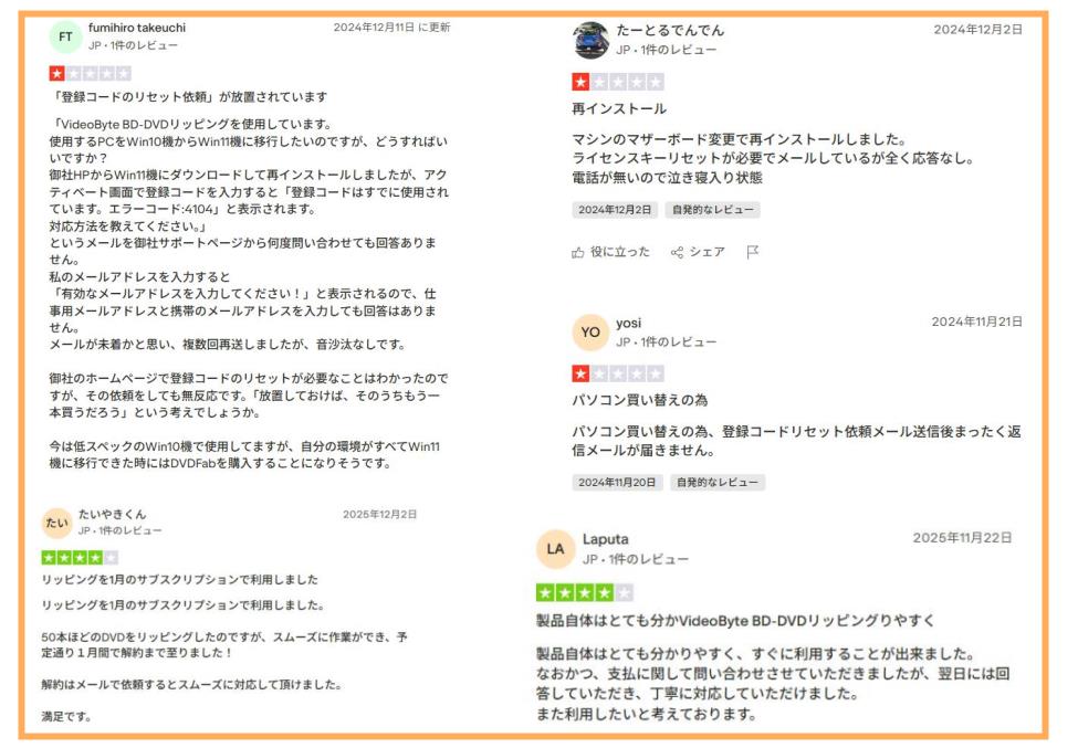 以下は、VideoByte BD・DVDリッピングがjp.trustpilot.comに掲載されている評価の一部です。