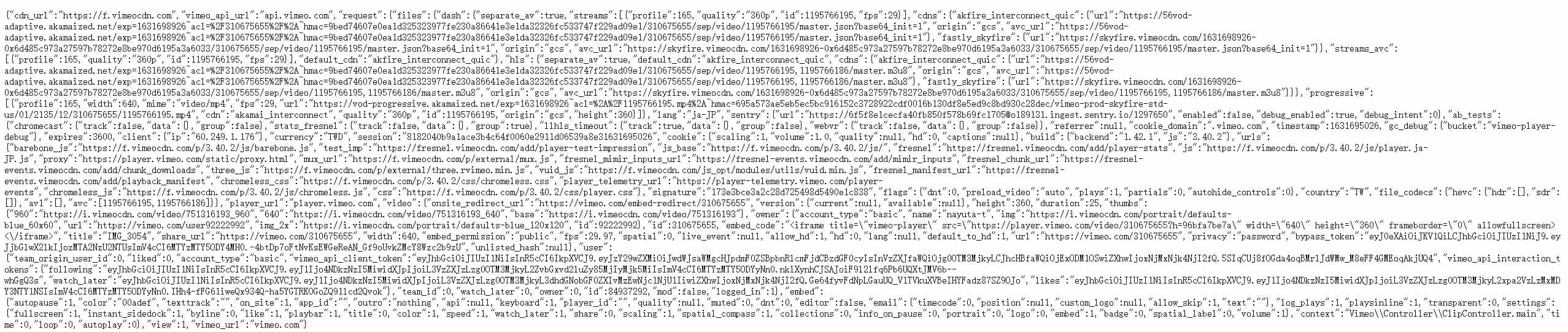 MP4のURLが見つからない場合、M3U8のURLをコピーしてください。一部の動画は長いため、Vimeoではそのビデオを複数のセグメントに分割し、配信しております。MP4の代わりに、M3U8形式のURLが利用できます。