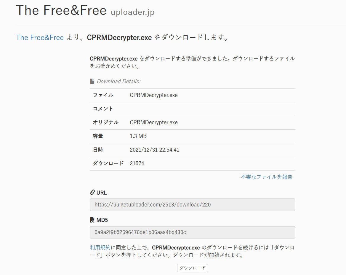 どうしてもCPRM Decrypterのダウンロードがしたい場合は、以下の検証されたサイトからダウンロードできます。