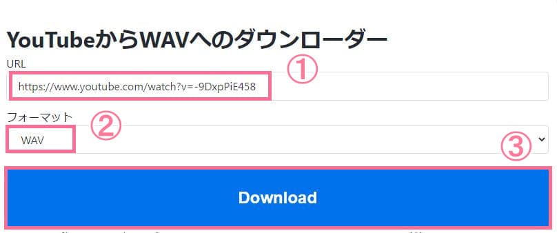 • オーディオ形式を「WAV」に設定して、「Download」ボタンを押します。