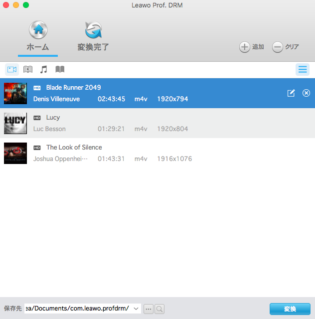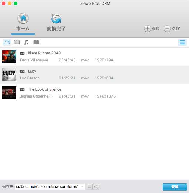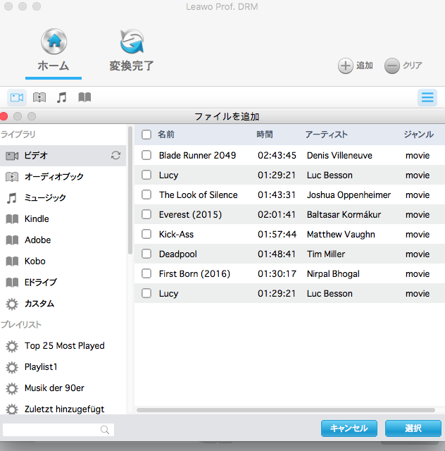 MacでLeawo Prof. DRM for Macをインストールして、起動した後、ソフトマイン画面で「ファイルを追加」ボタンをクリックし、変換したいiTunesビデオを選択して、Prof. DRM for Macにインポートします。また、処理対象のiTunesビデオファイルを直接的にプログラムにドラッグすることもできます。