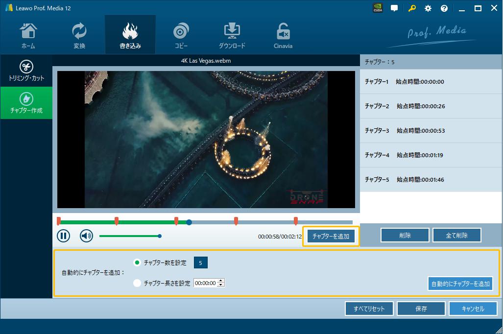 4Kブルーレイのチャプターを作成するには、手動でチャプターを作成、自動でチャプターを作成、2つの方法があります。