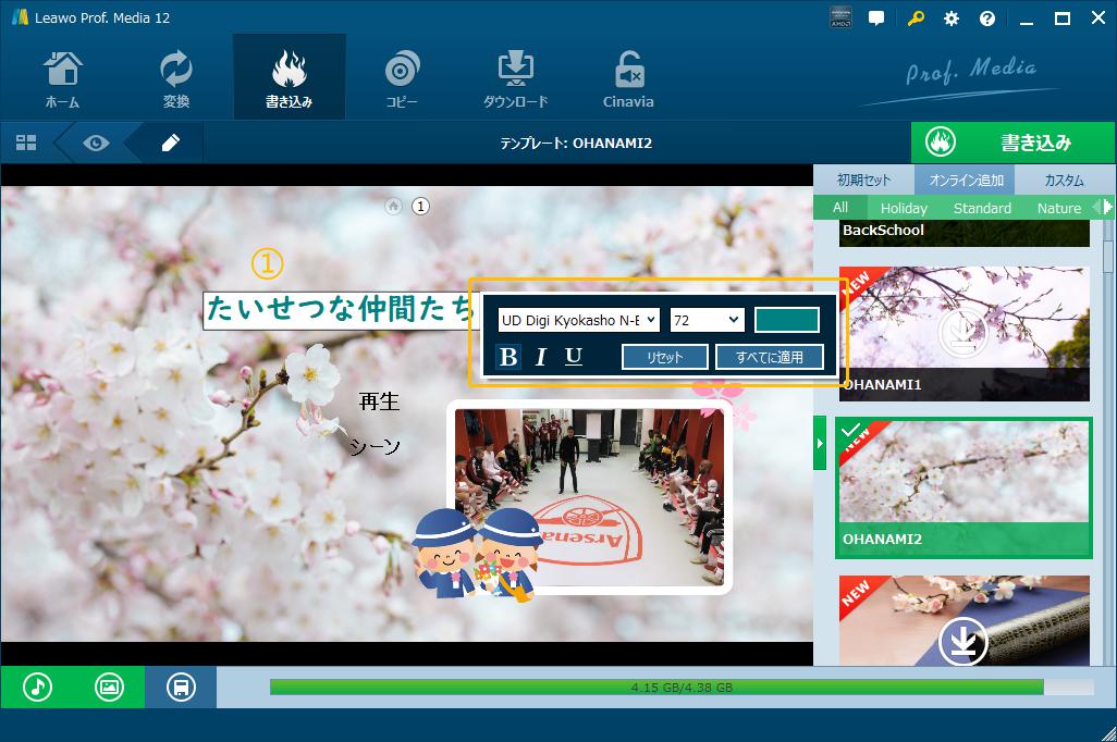 編集パネルでは、ディスクメニューのテンプレートを自由に編集できます。