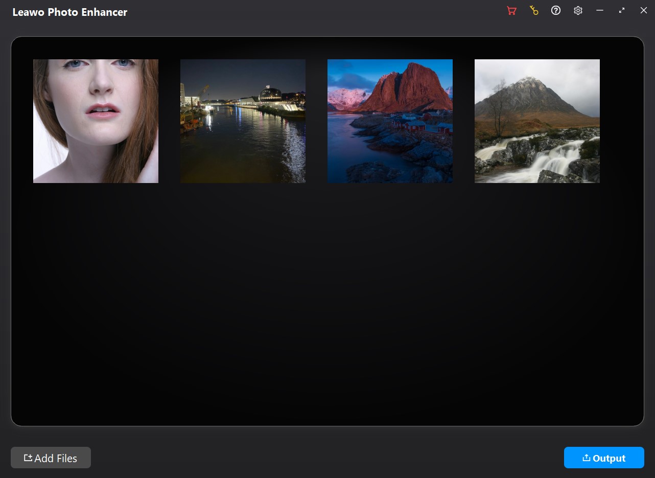 1. You could enhance multiple photos one by one for batch output within Leawo Photo Enhancer. After completing editing one photo, click the close button on the editing interface. Leawo Photo Enhancer will save all editing features you have applied to this photo for output. Then, you could double click another photo for AI photo enhancing.