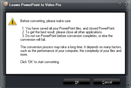 Leawo PowerPoint to Video Pro allows you to customize PowerPoint files before you start to convert PowerPoint to video files. You could set slide duration, background music, add watermark, determine video layout, etc. Click the Customize button
