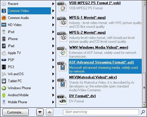 Various video profiles have been predefined and embedded in the PPT to video converter program. Choose an appropriate output video format from the "Profile" box